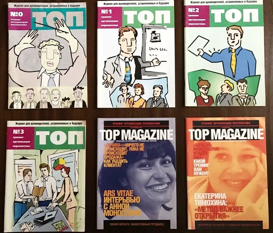 Совместно с тренинговыми компаниями Team Training, Business Training, CBSD, MTI был создан первый в России журнал о тренингах ТОП (Тренинг, организация, перспектива), выходивший в 1999-2004 гг.